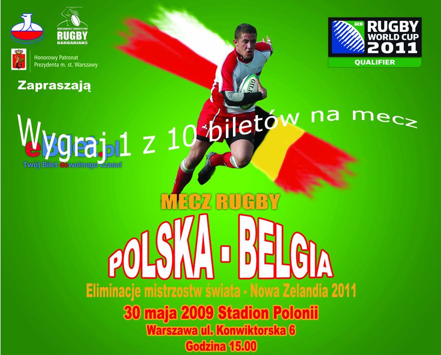 Najpopularniejszy Polski Wortal Sympatyków Rugby www.rugby.info.pl wraz z organizatorami meczu (WARSZAWSKIE TOWARZYSTWO RUGBY „BARBARIANS”) ma dla naszych kibiców 10 biletów, na miejmy nadzieje szczęśliwy dla nasz mecz.