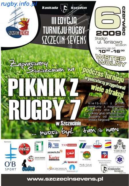 W ostatnią sobotę tj. 06.06.2009r. w Szczecinie odbyła się już trzecia edycja turnieju Szczecin Sevens, którego organizatorem jest Kaskada Szczecin Rugby Klub. Zgodnie z zamierzeniami impreza powtórzyła sukces ubiegłorocznej edycji zarówno pod względem organizacyjnym jak i sportowym. Nie zawiodła również pogoda, która jak i rok temu przywitała wszystkich bezchmurnym niebem. W zawodach wzięło udział 9 ekip, w tym aż 4 zachodniopomorskie.